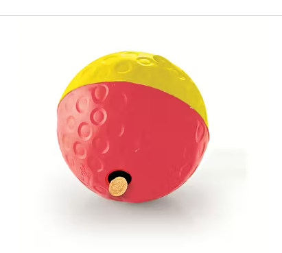中におやつを入れて転がしながら遊ぶタイプです。運動+頭の刺激を同時に与えられます。