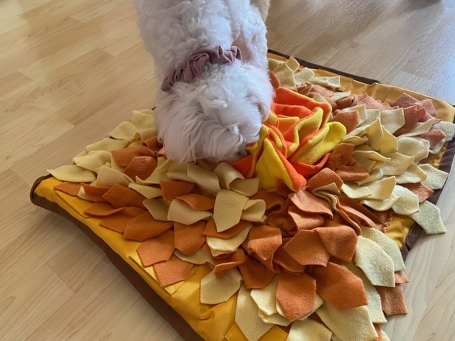 これは ノーズワーク(嗅覚遊び) そのもの。10分程度でも、お散歩したのと同じくらい満足してくれる子も多いです。