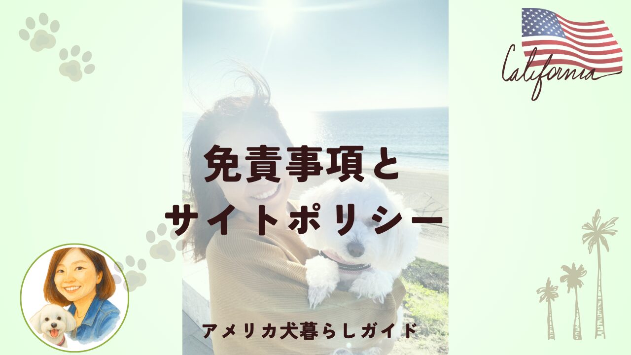 当サイト【アメリカ犬暮らしガイド】(https://www.usdoglife.com)に掲載している内容は、運営者の経験や知識、調査に基づいて作成しています。できる限り正確で有益な情報をお届けするよう努めておりますが、その正確性や信頼性を完全に保証するものではありません。